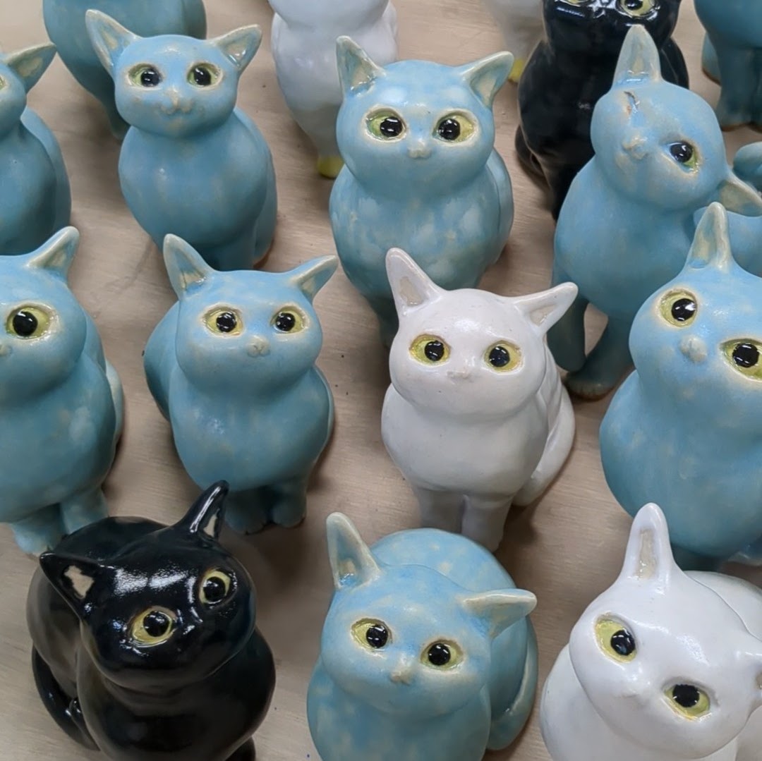 一つ一つ手作した1点モノの「猫陶器(アトリエ九禅)」など、猫デザインのグッズも並びますよ!