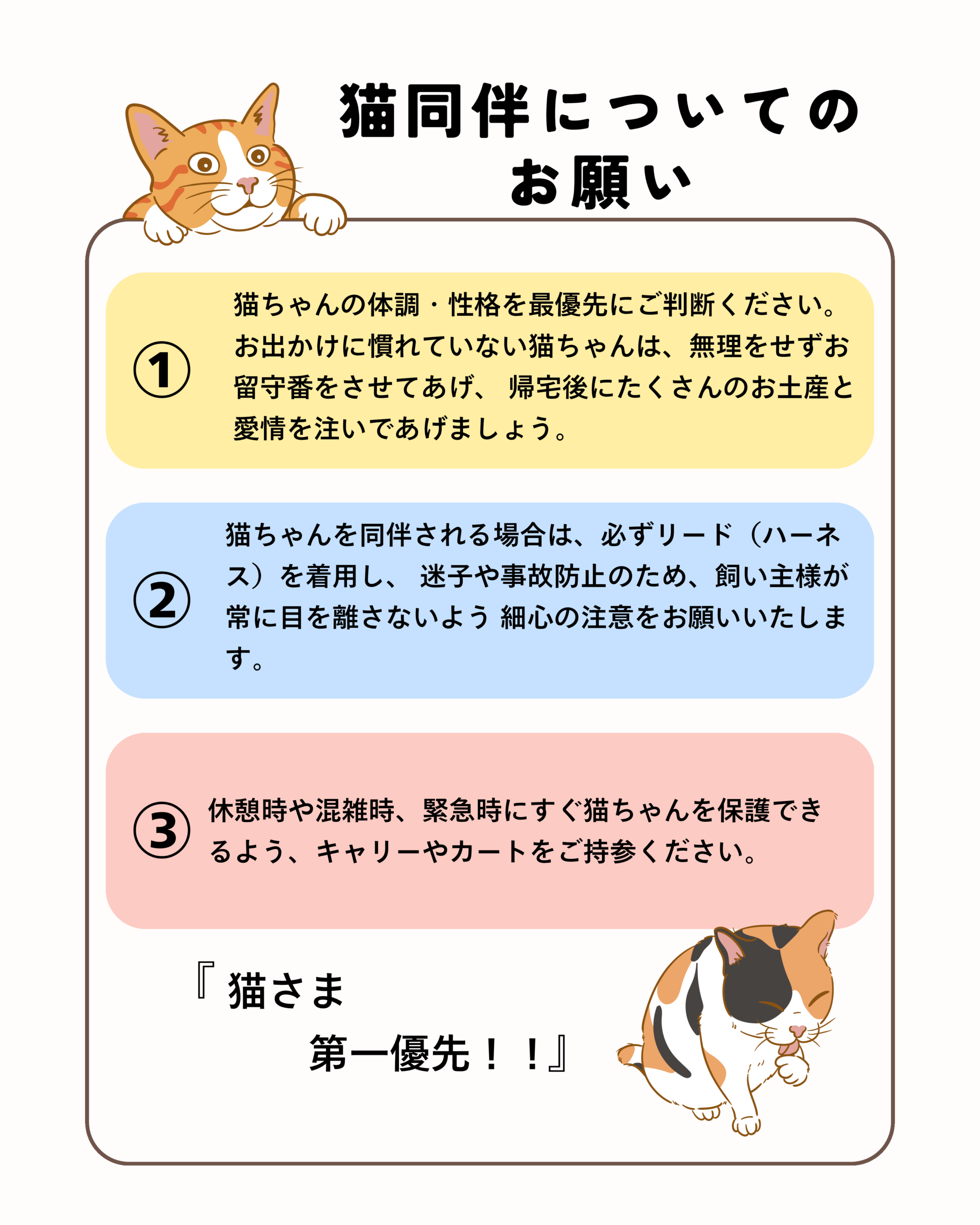 猫ちゃんを同伴される場合は、必ず“リードやハーネスを着用”しましょう♪