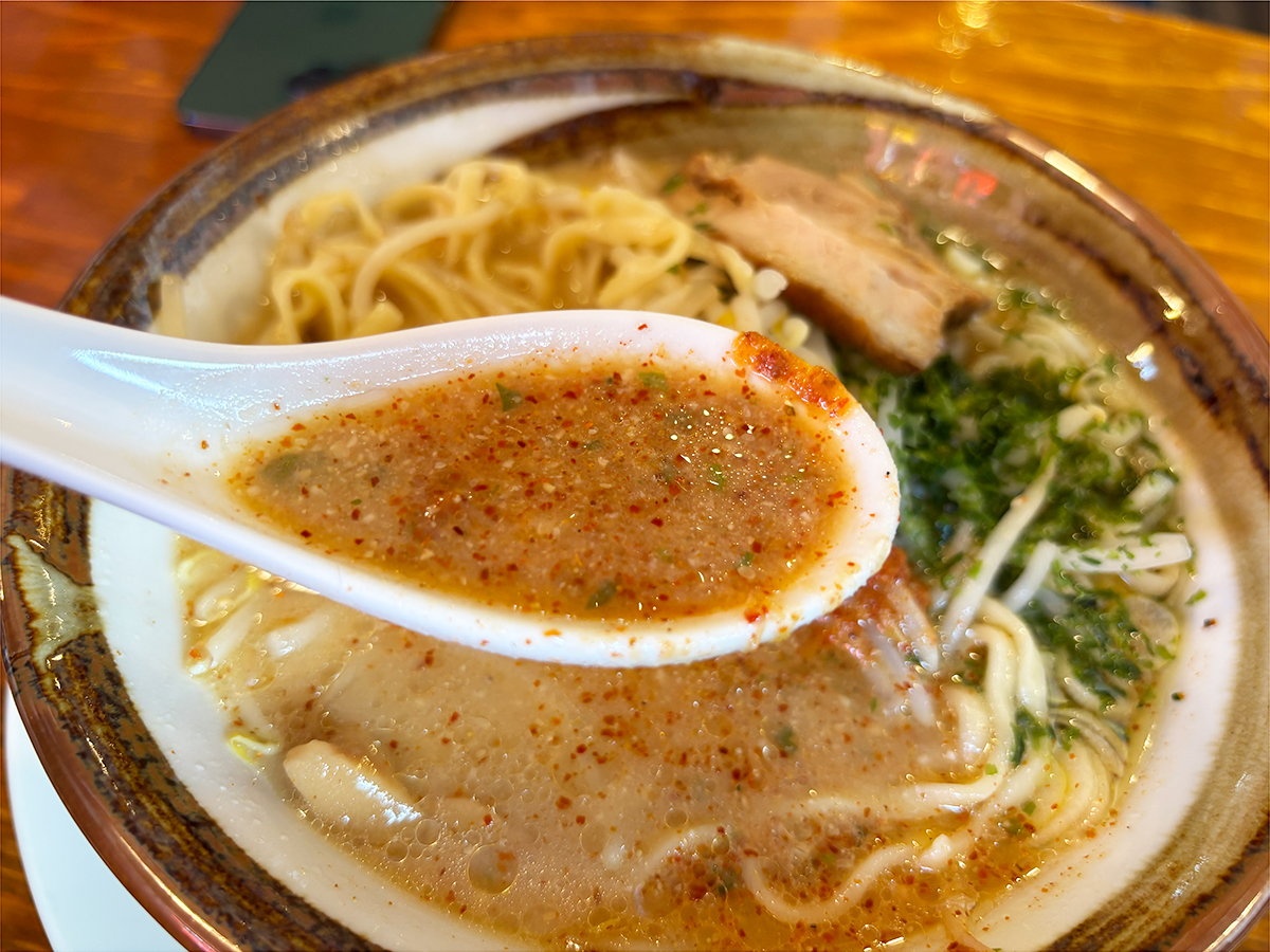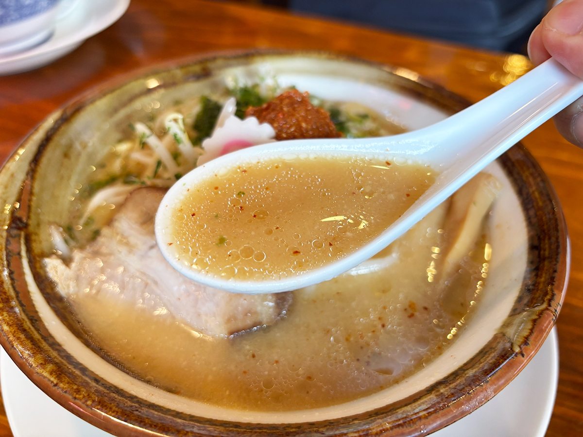 スープを一口すすると…、奥行きのある旨みが口いっぱいに広がります!