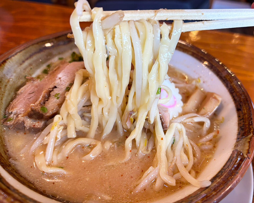 さらに、中太のちぢれ麺がスープをしっかりキャッチ!