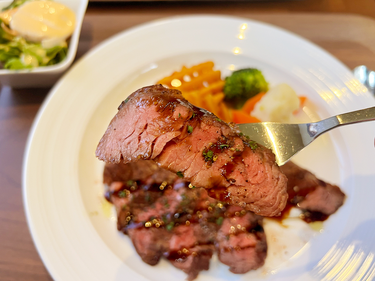 ディナータイムに訪れた際は、この本格的なステーキをぜひ味わってみてくださいね!