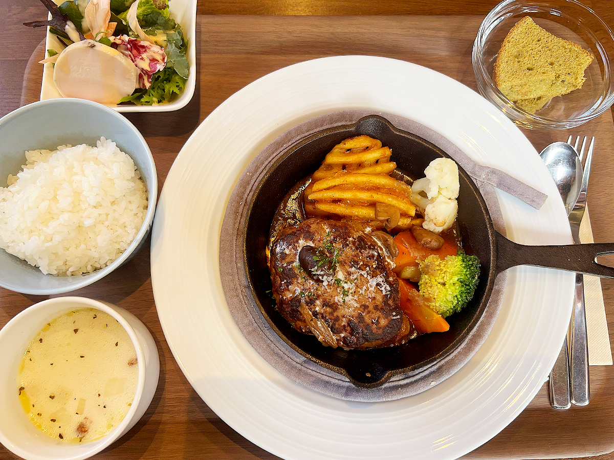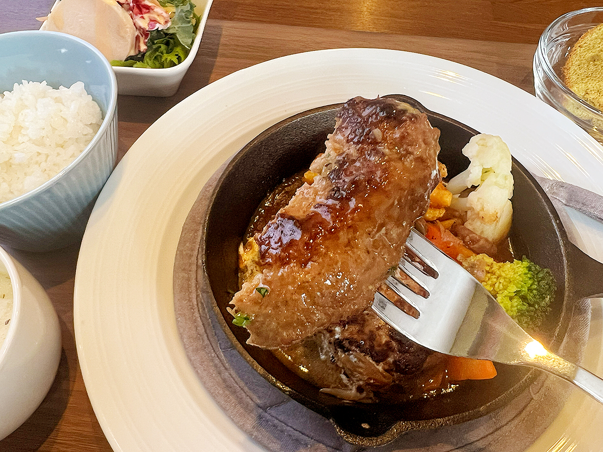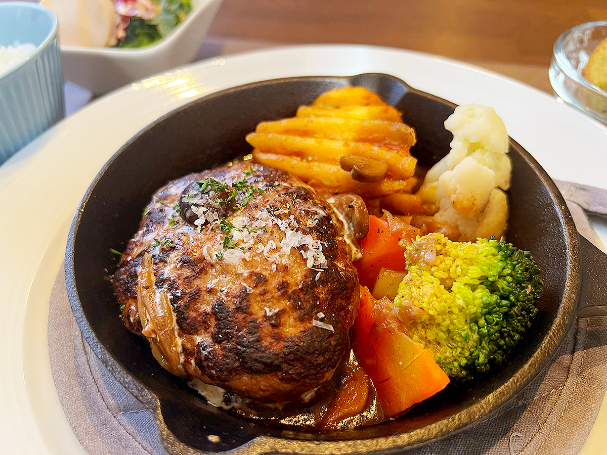 ハンバーグはふっくらジューシーで、一口食べるごとに幸せな気持ちになります!