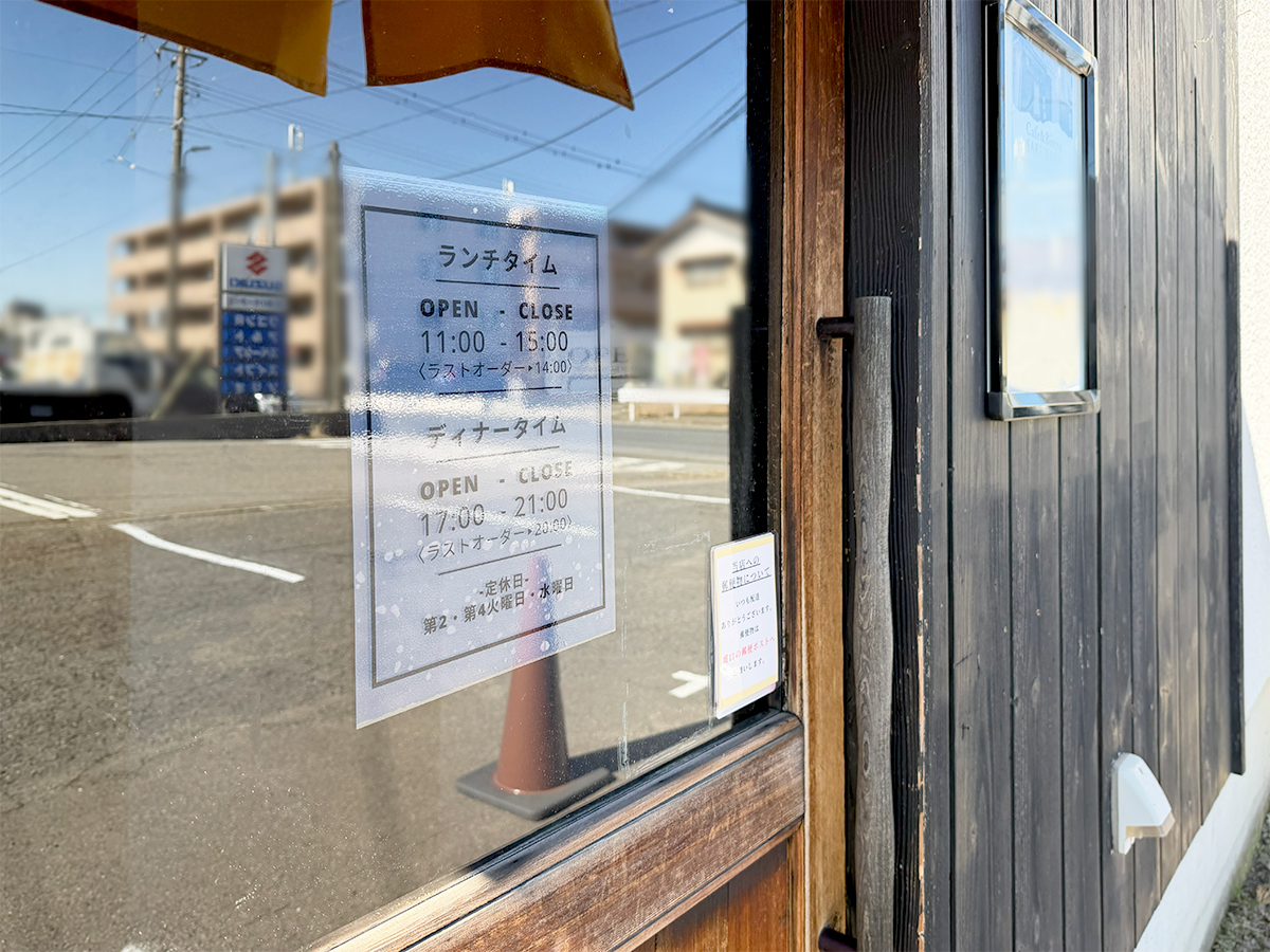 営業時間:ランチ 11:00〜14:00 / ディナー 17:00〜20:00