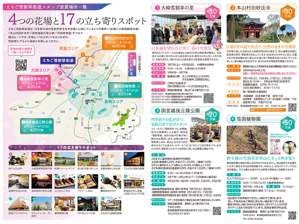 イベントの会場となる「えちご雪割草街道」は、この4カ所の花場を結ぶ観光ルート♪