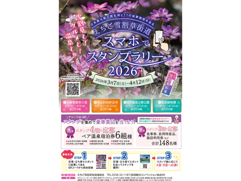 “春の花を楽しみたい方に、おすすめの「イベント情報」をガタチラがお届け! 『えちご雪割草街道スマホでスタンプラリー2026(会場:柏崎市・長岡市の花場4カ所)』が3月7日(土)~4月12日(日)まで開催されますよ♪ 開花 … 続きを読む 春を告げる「雪割草」を見に行こう♪『えちご雪割草街道スマホでスタンプラリー2026』が3月7日からスタート!スタンプを集めて豪華賞品をゲット♪
