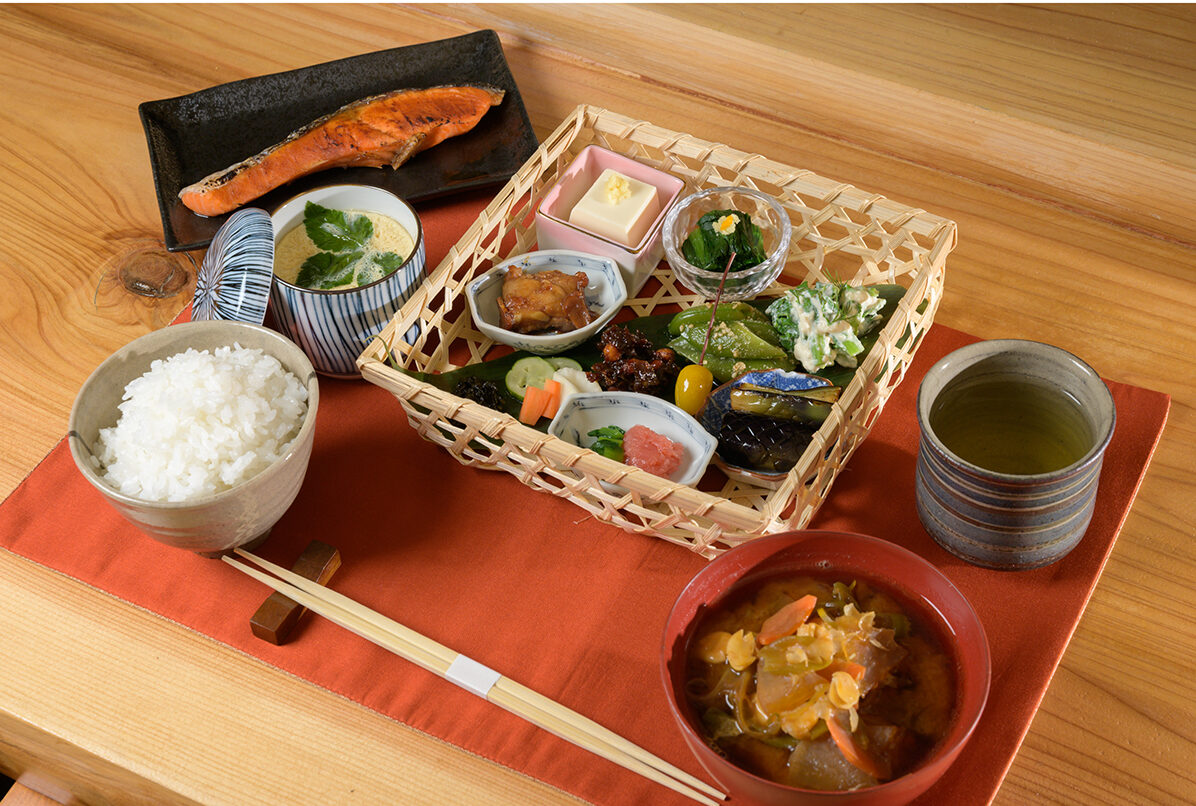 朝食メニューの「土鍋とおとも(3,500円)」や、昼食メニューの「米と汁と漬物と(1,000円)」などで堪能できますよ!