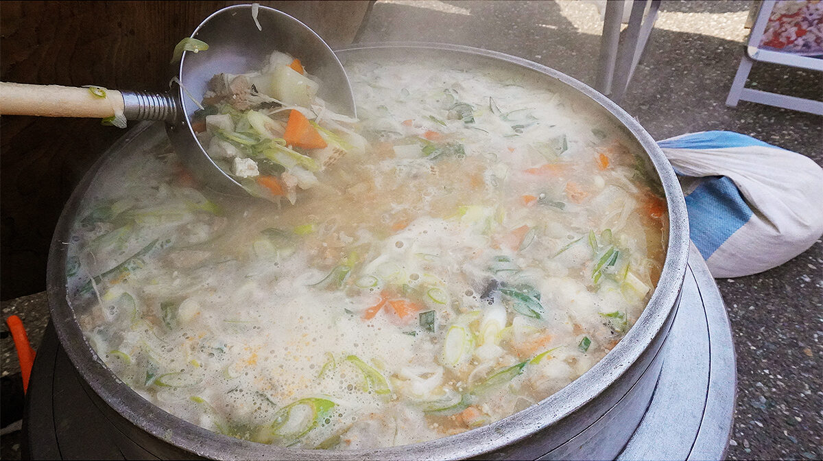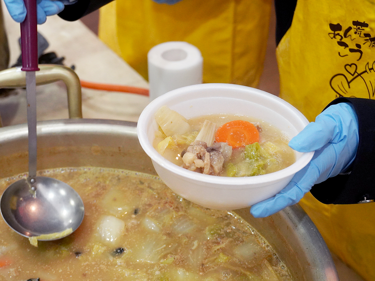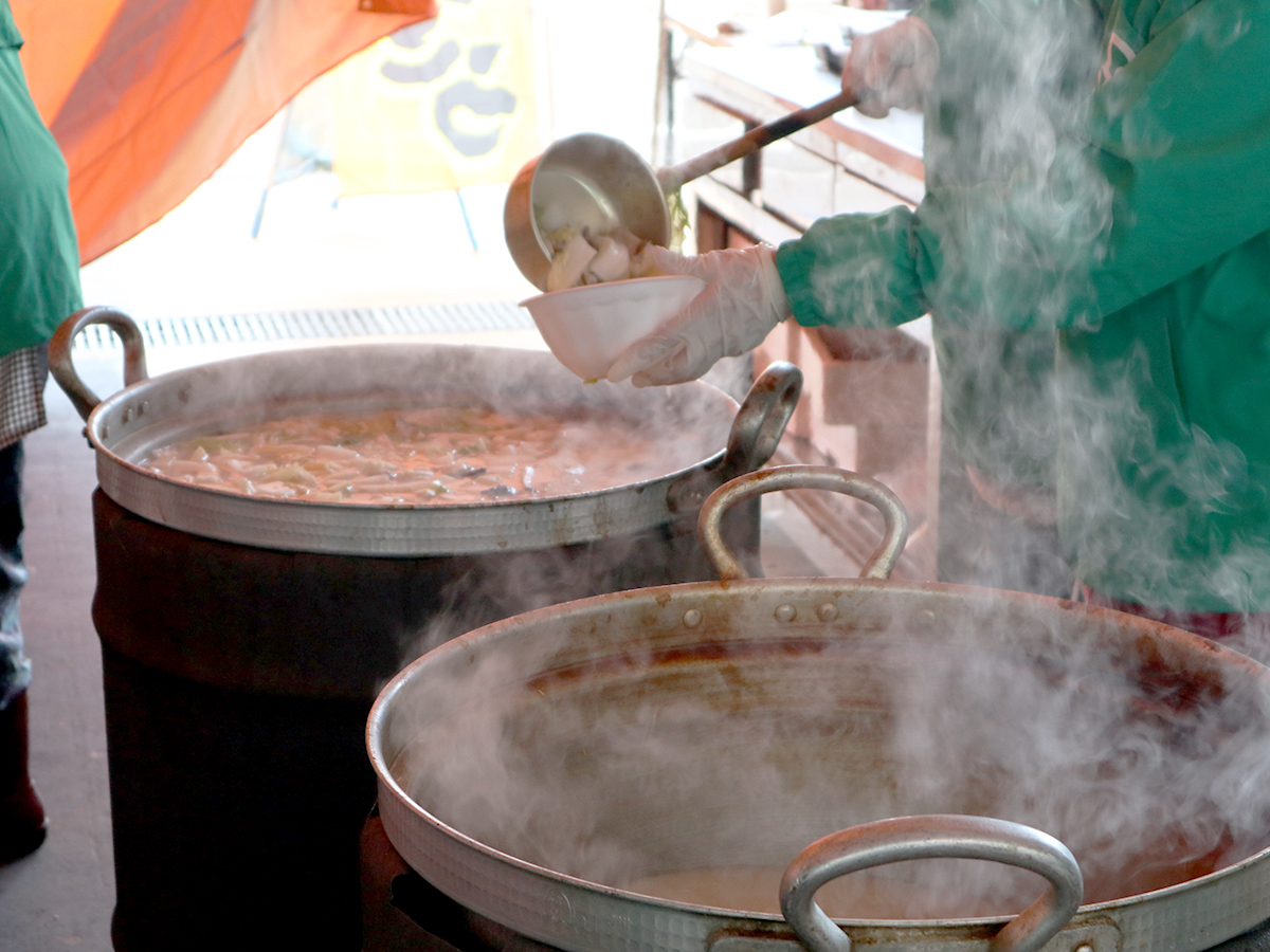道の駅『親不知ピアパーク』の特設会場では、具だくさんの「みそ仕立てあんこう汁」を堪能できます♪