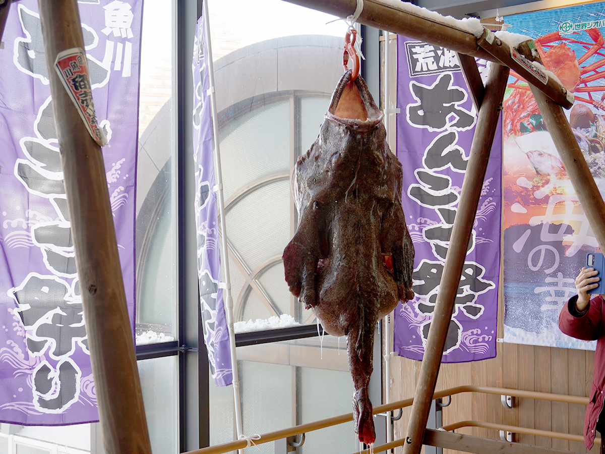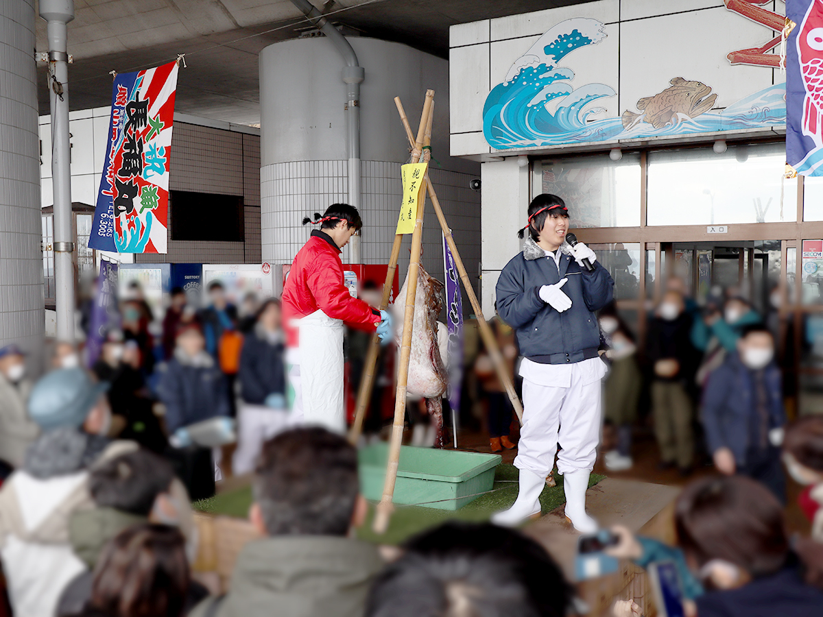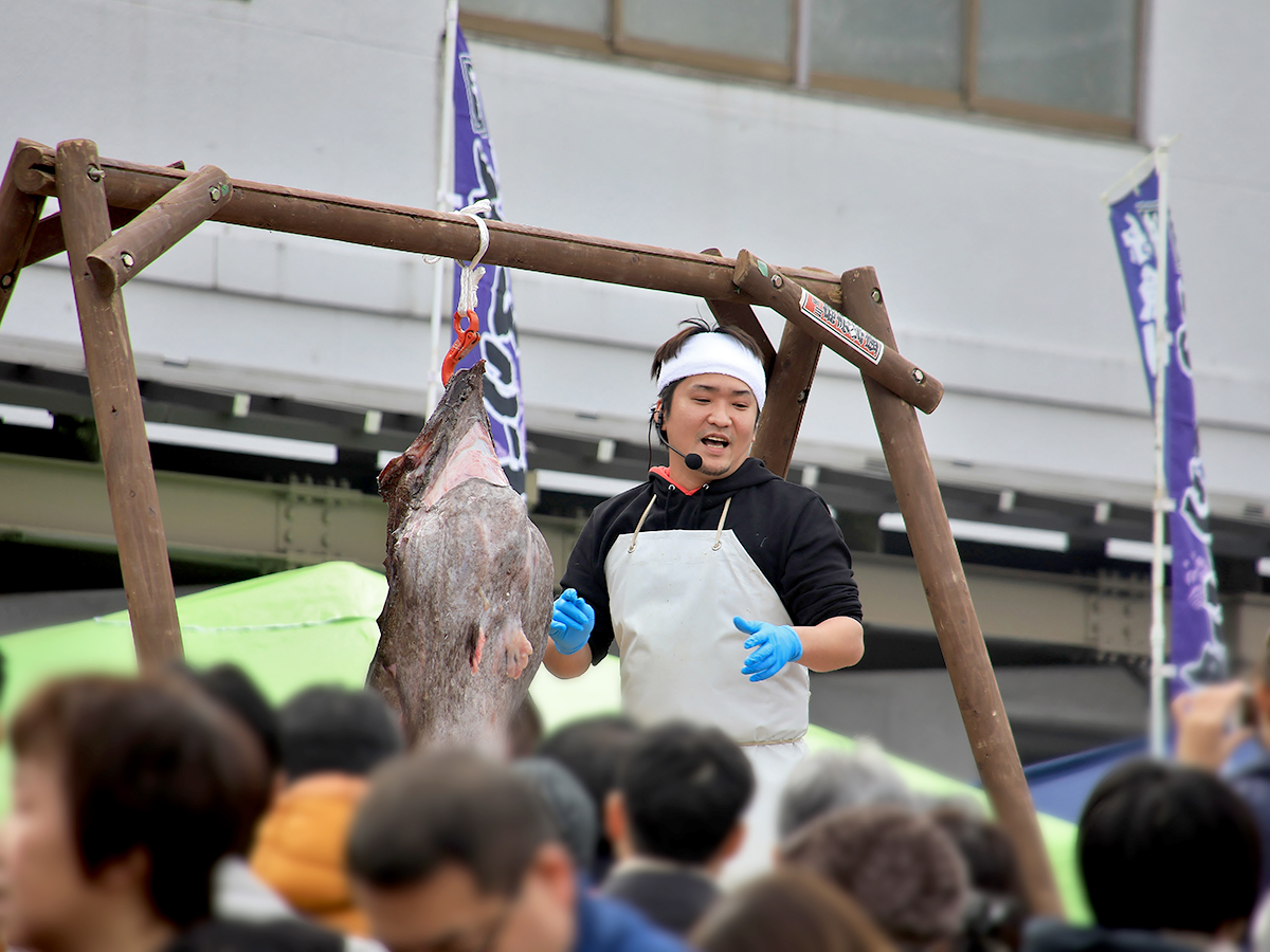 最大の見どころは、迫力満点の「あんこうのつるし切り」の実演!