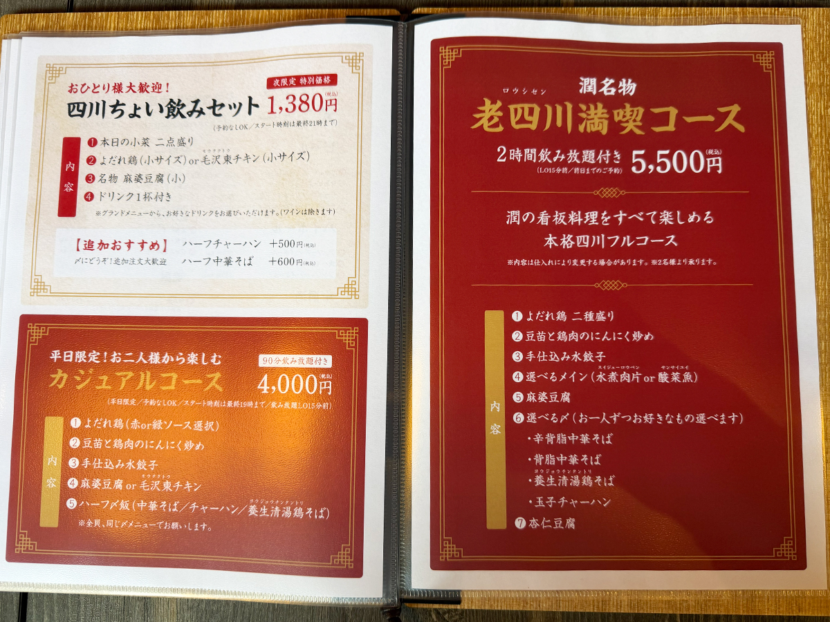 2時間飲み放題付きの「老四川満喫コース(5,500円)」もあって、歓送迎会シーズンにもピッタリ♪