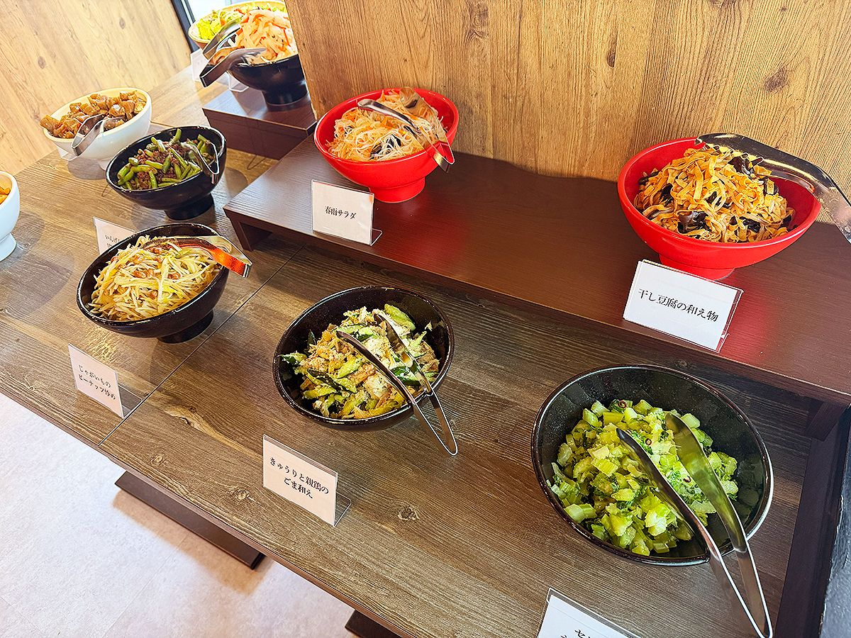 「干し豆腐の和え物」や「きゅうりと親鶏のごま和え」など、“数種類の料理を好きなだけ”楽しめますよ!