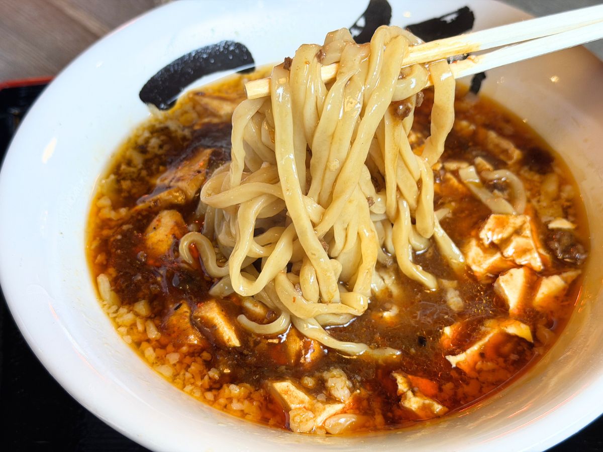 とろりとした麻婆餡が麺にしっかり絡まって、口いっぱいに旨辛が広がりますよ♪