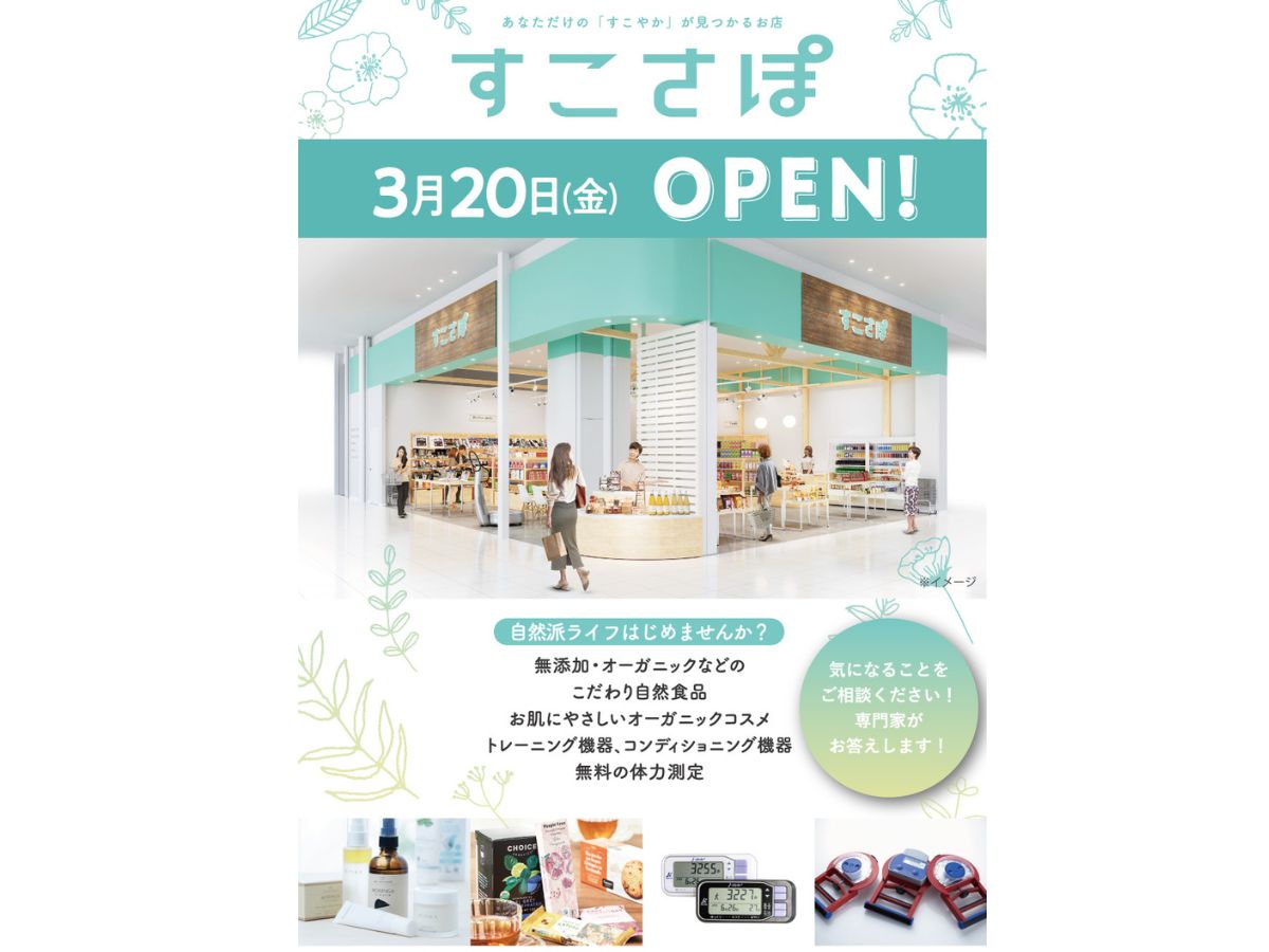 健康サポートショップ『すこさぽ イオンモール新発田店』が3月20日(金)にオープンしますよ♪