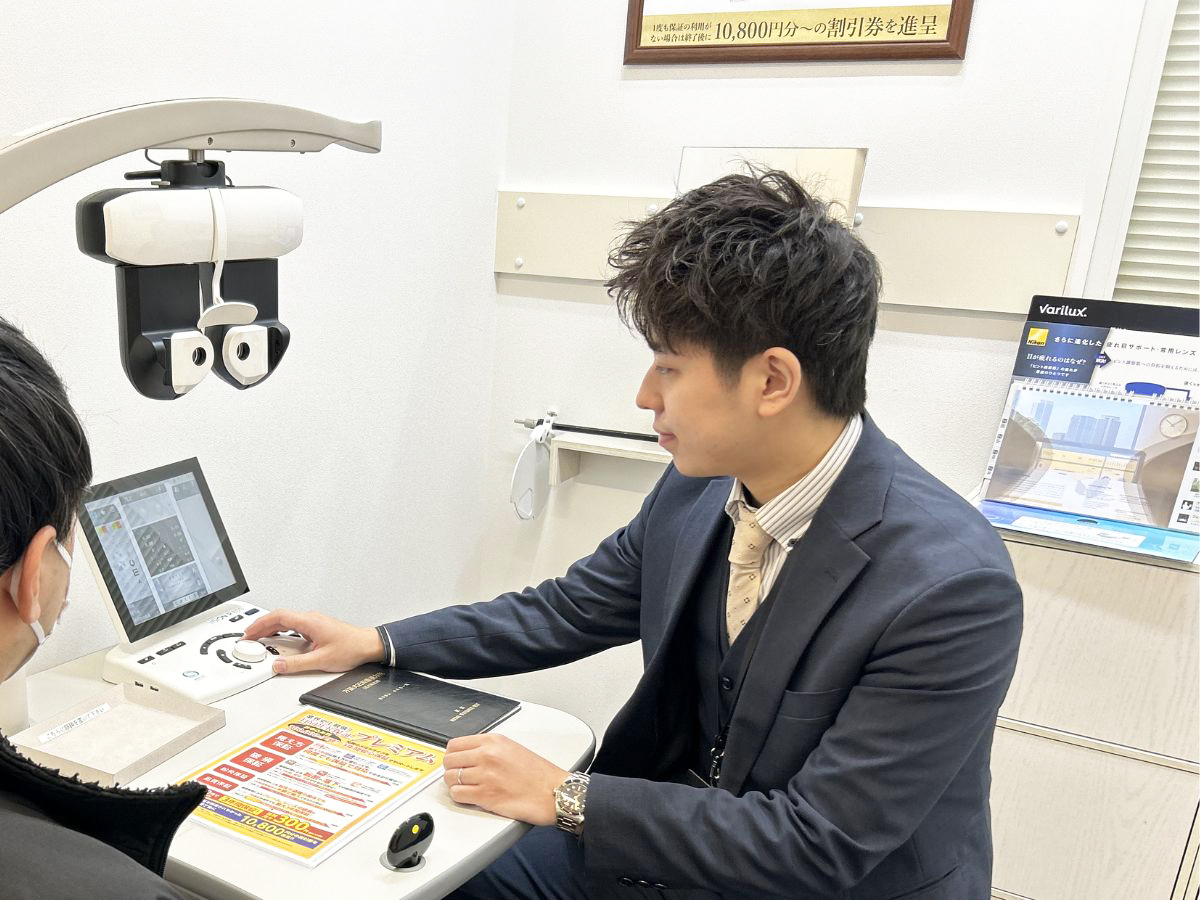 国家検定である「眼鏡作製技能士」をはじめ、同社独自の研修制度をクリアした専門スタッフが最新の測定機材を使用して、最適なメガネ作りをサポートしてくれます♪
