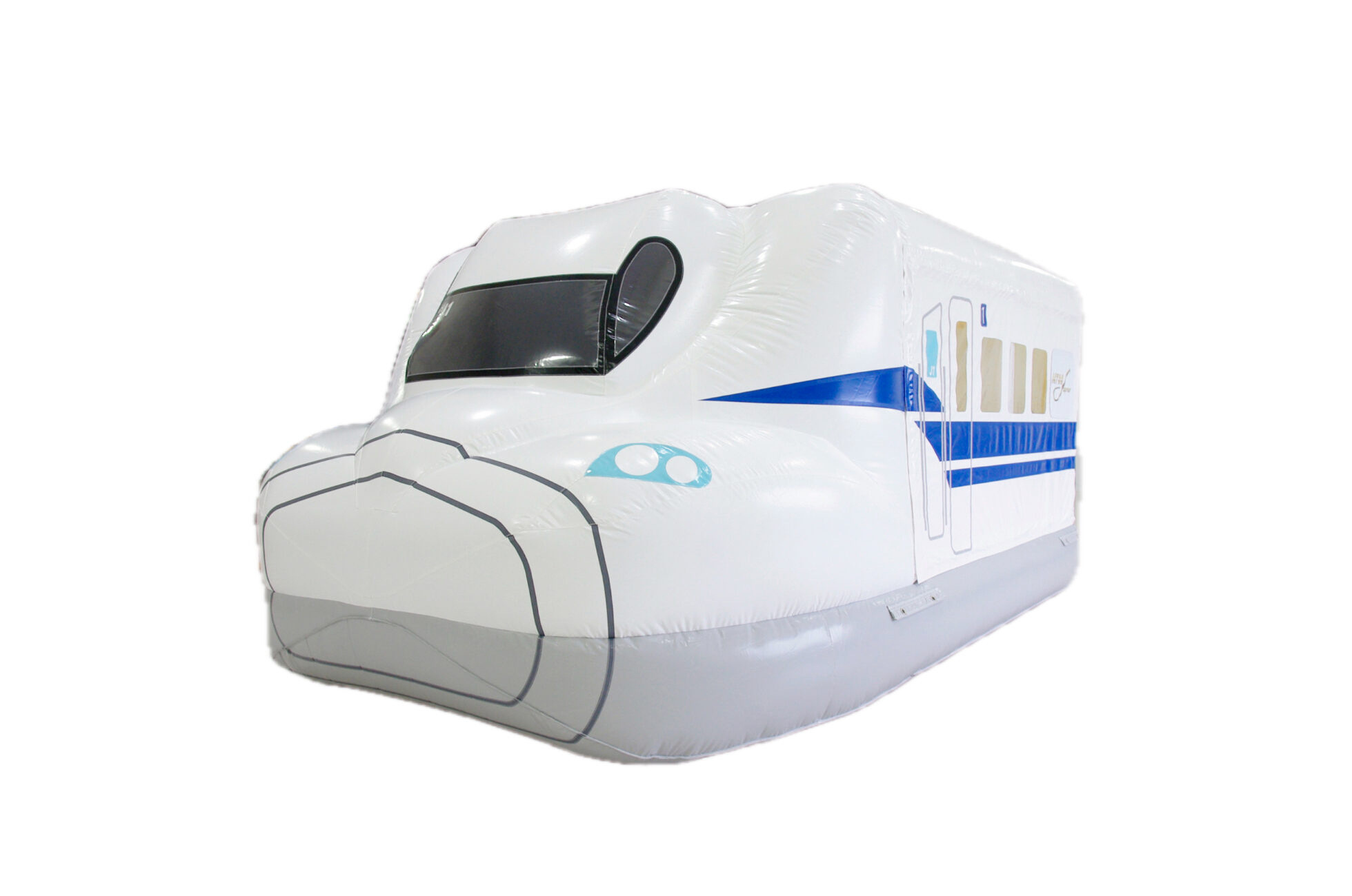 “新幹線をモチーフにしたふわふわ遊具”で、飛んだり跳ねたりして思いっきり遊べます♪
