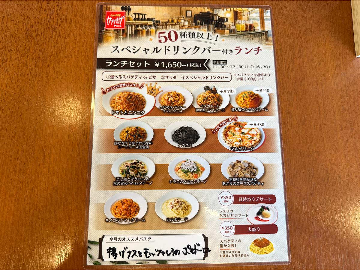 「スペシャルドリンクバー付ランチセット(1,650円~)」というのは、本当にコスパ抜群ですね♪