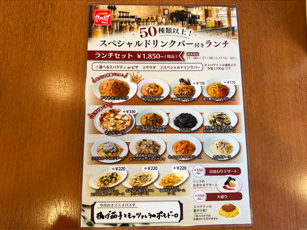 今回は平日限定の「スペシャルドリンクバー付ランチ(1,650円)」を注文◎