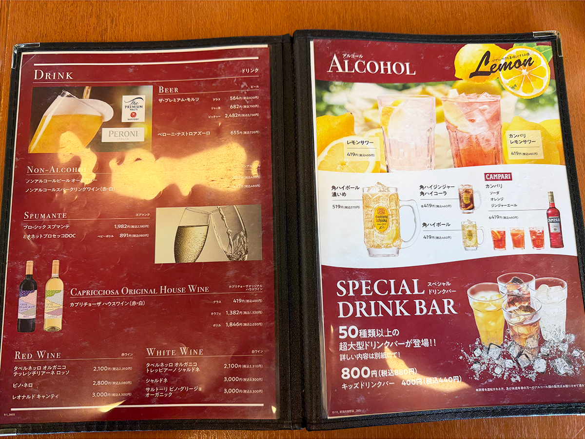 鳥屋野潟店には、カプリチョーザグループ最大級の「スペシャルドリンクバー」が登場!