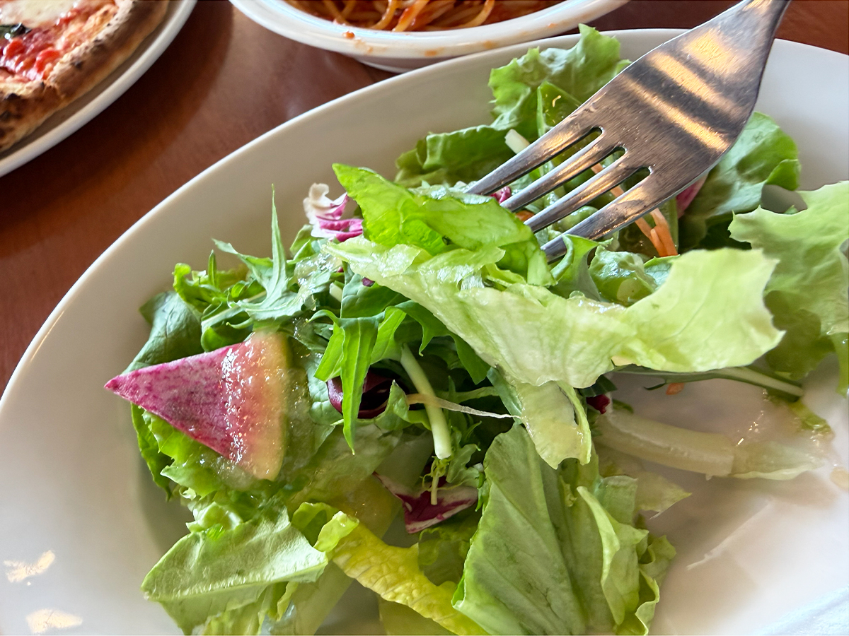 セットのサラダは、シャキシャキとした新鮮野菜がたっぷり◎