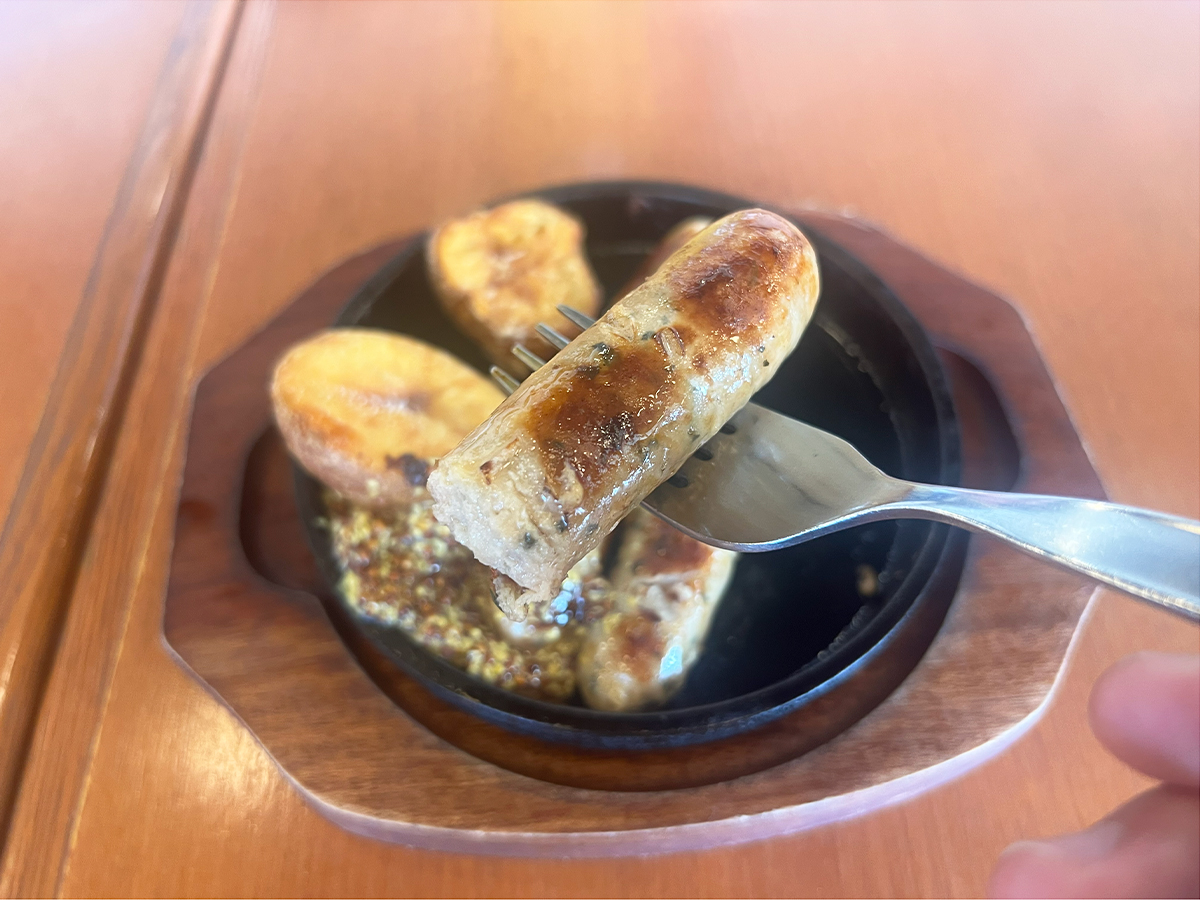 ハーブやスパイスを効かせた粗挽き肉が特徴で、日本のウインナーよりも“肉感が強い”のがポイントですよ!