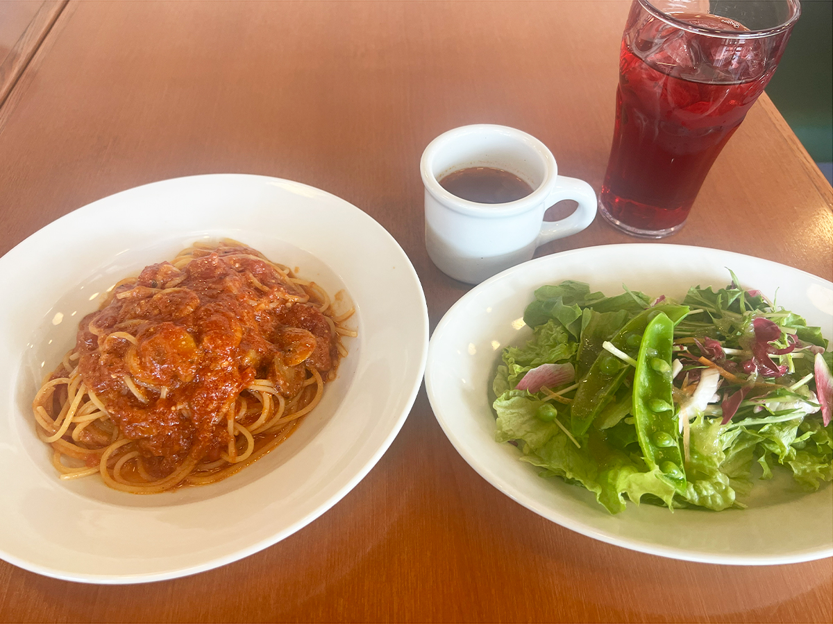 “スパゲティ・サラダ・スペシャルドリンクバー”がセットになった大満足のランチです♪