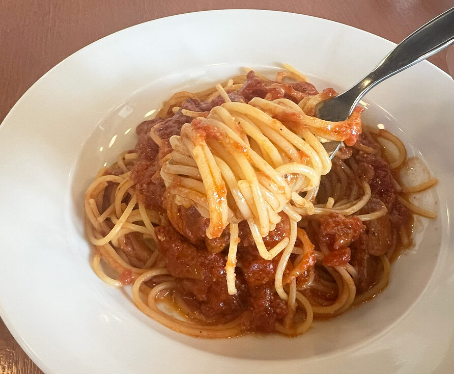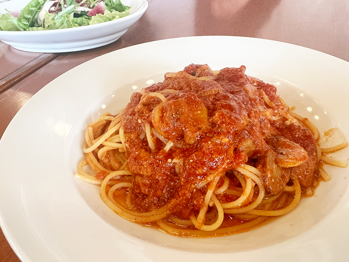 スパゲティはアルデンテの程よい歯ごたえで、ソースがしっかり絡んで相性抜群!