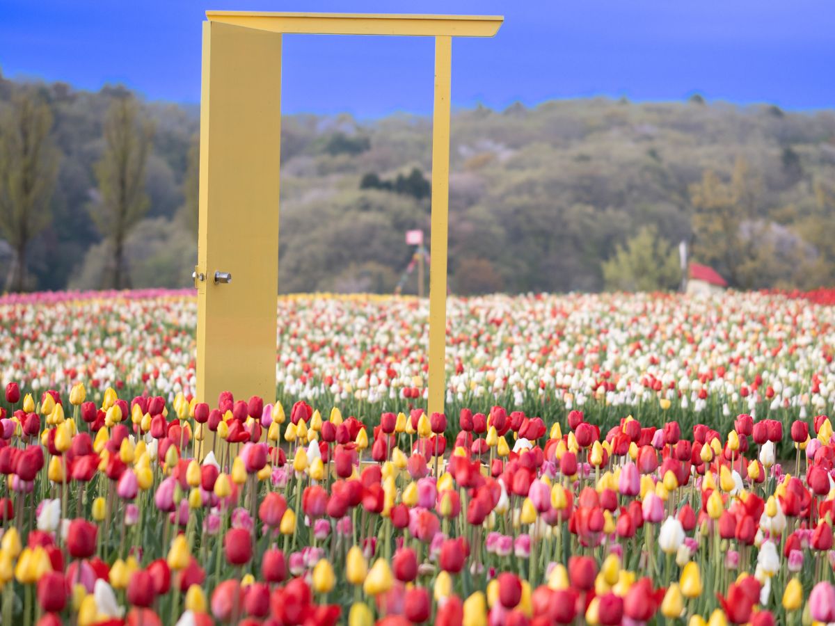 赤・黄・ピンクなどのチューリップと一緒に、SNS映えする1枚を撮りましょう♪