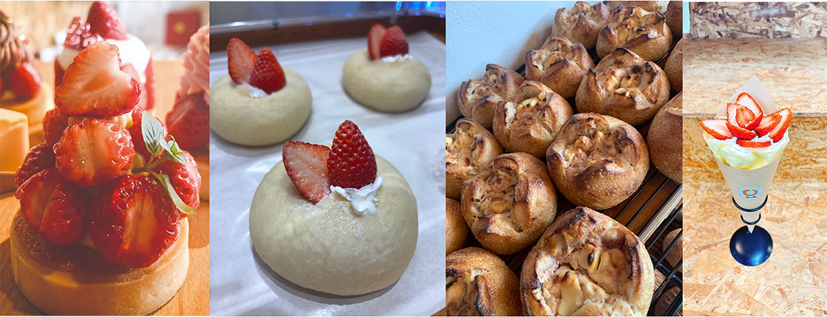 越後姫を贅沢に使ったスイーツ&パンは、味はもちろん見た目も華やか◎