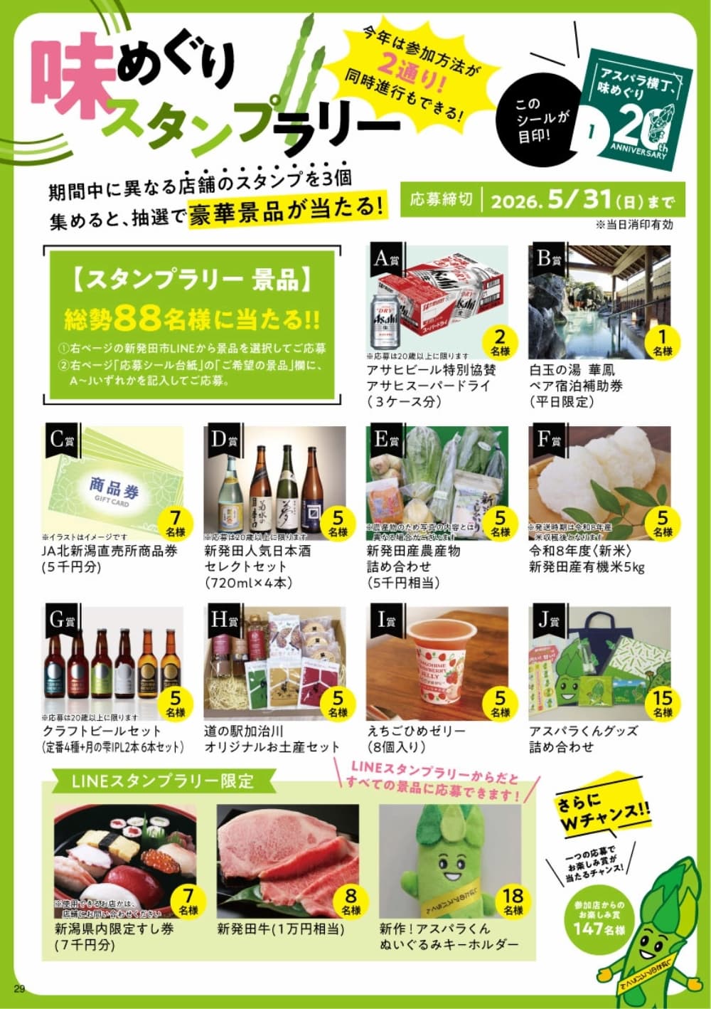 | お問い合わせ先 | 「食のアスパラ横丁、味めぐり」開催実行委員会(新発田市商工振興課・農林水産課) TEL:0254-22-3030 公式ホームページ |