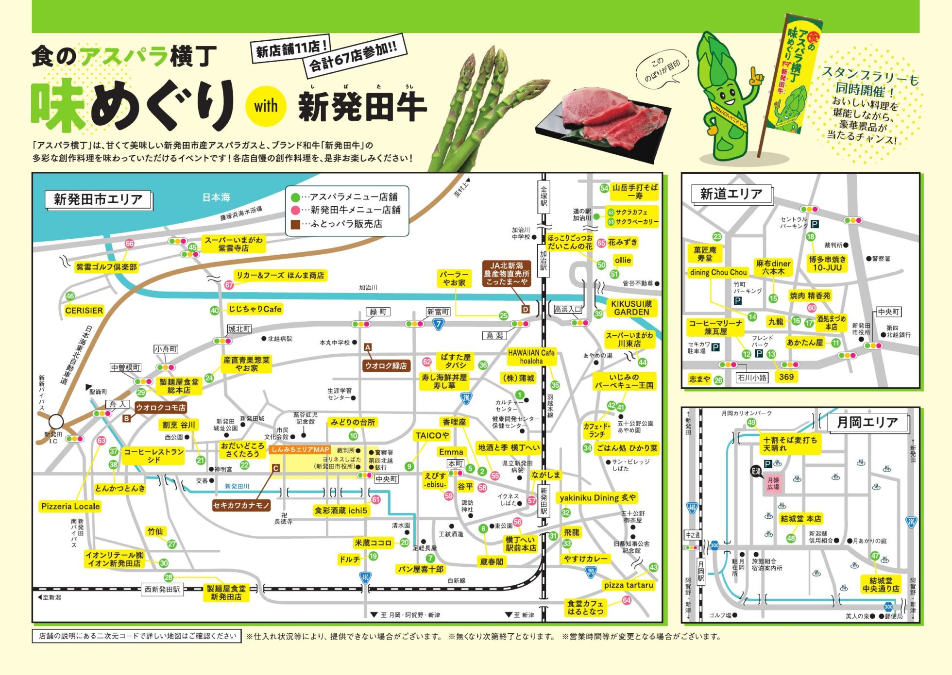 今年は“市内の67店舗”が参加し、新発田産アスパラガスと新発田牛の創作料理を提供◎