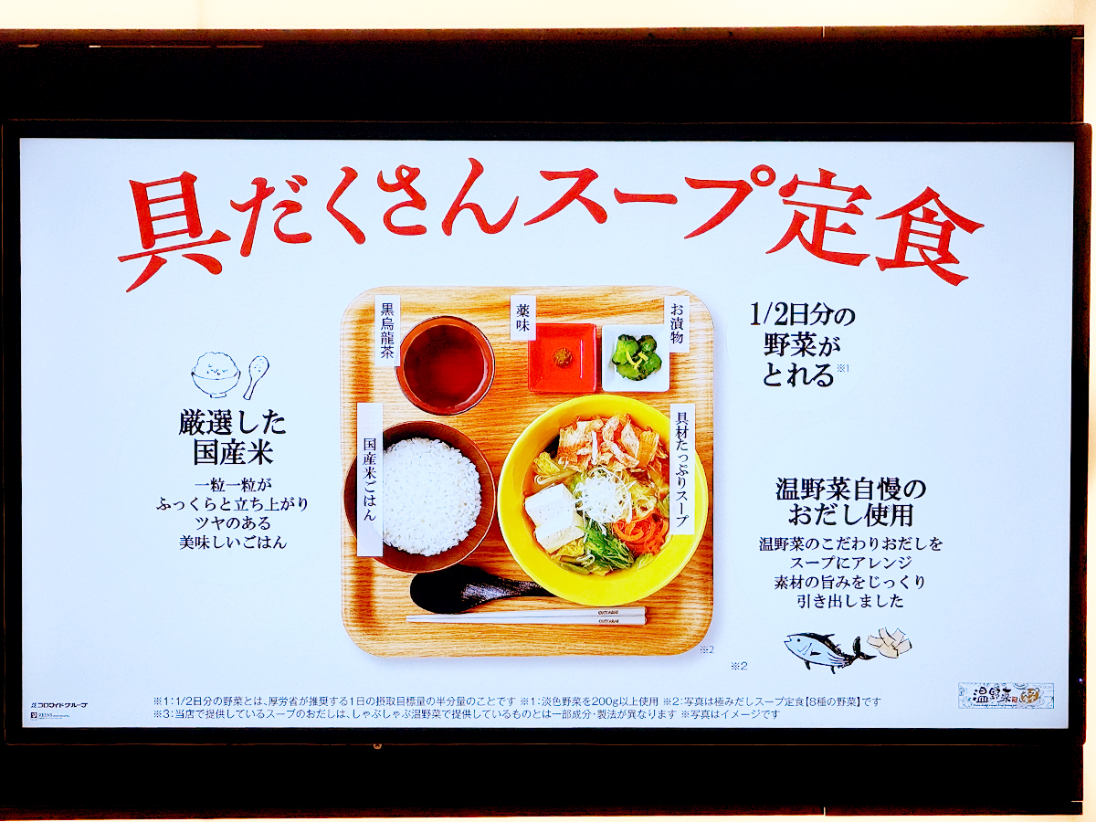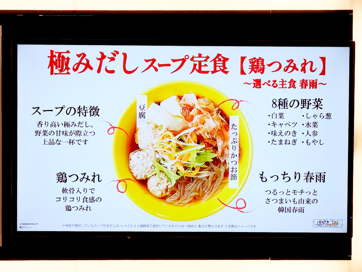 「しゃぶしゃぶ温野菜」ブランドのだしをベースにした、“本格派のスープ定食専門店”ですよ◎