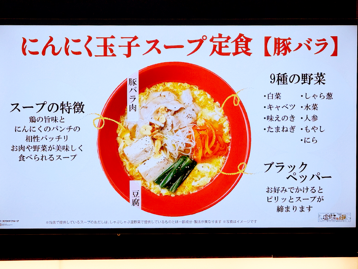 • にんにく玉子スープ定食【豚バラ(1,188円)】