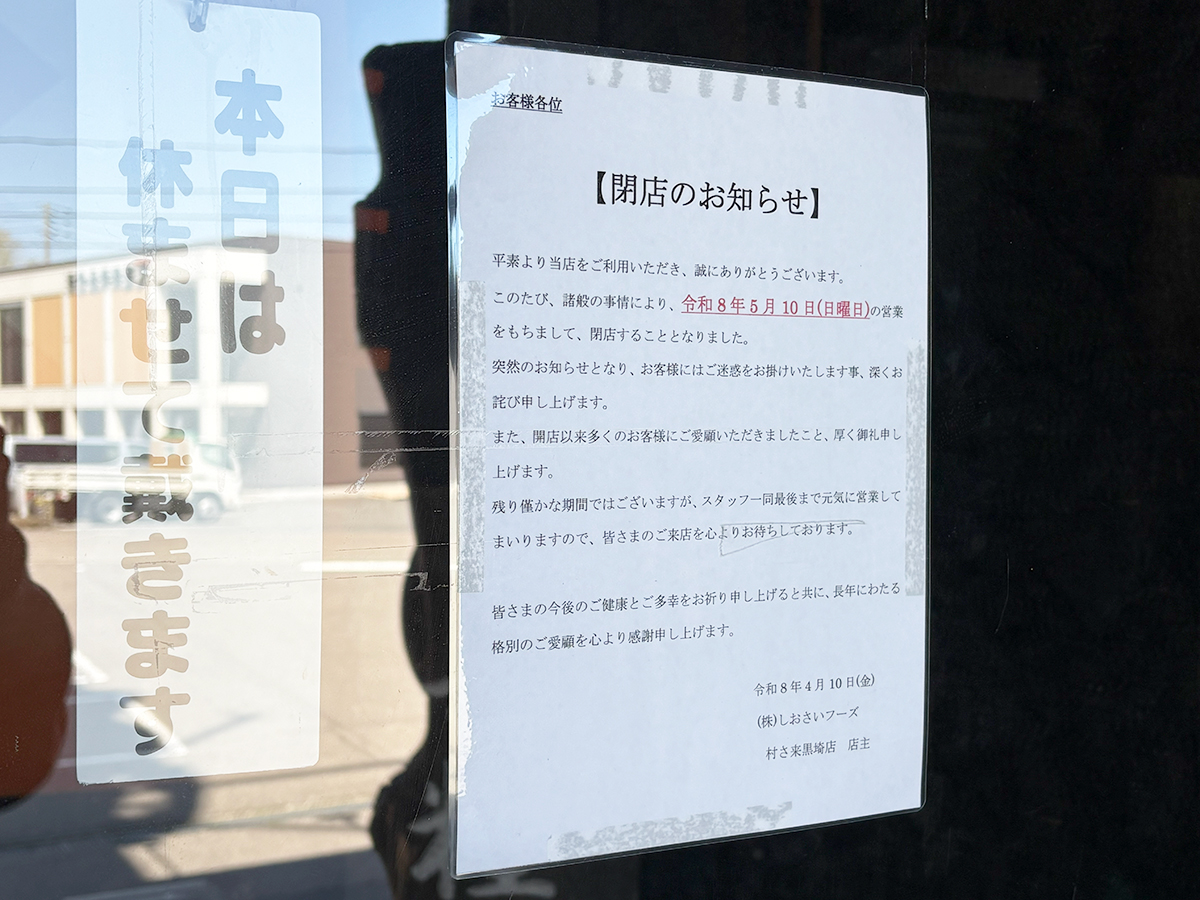 『村さ来 黒埼店』は、5月10日(日)に閉店となります。