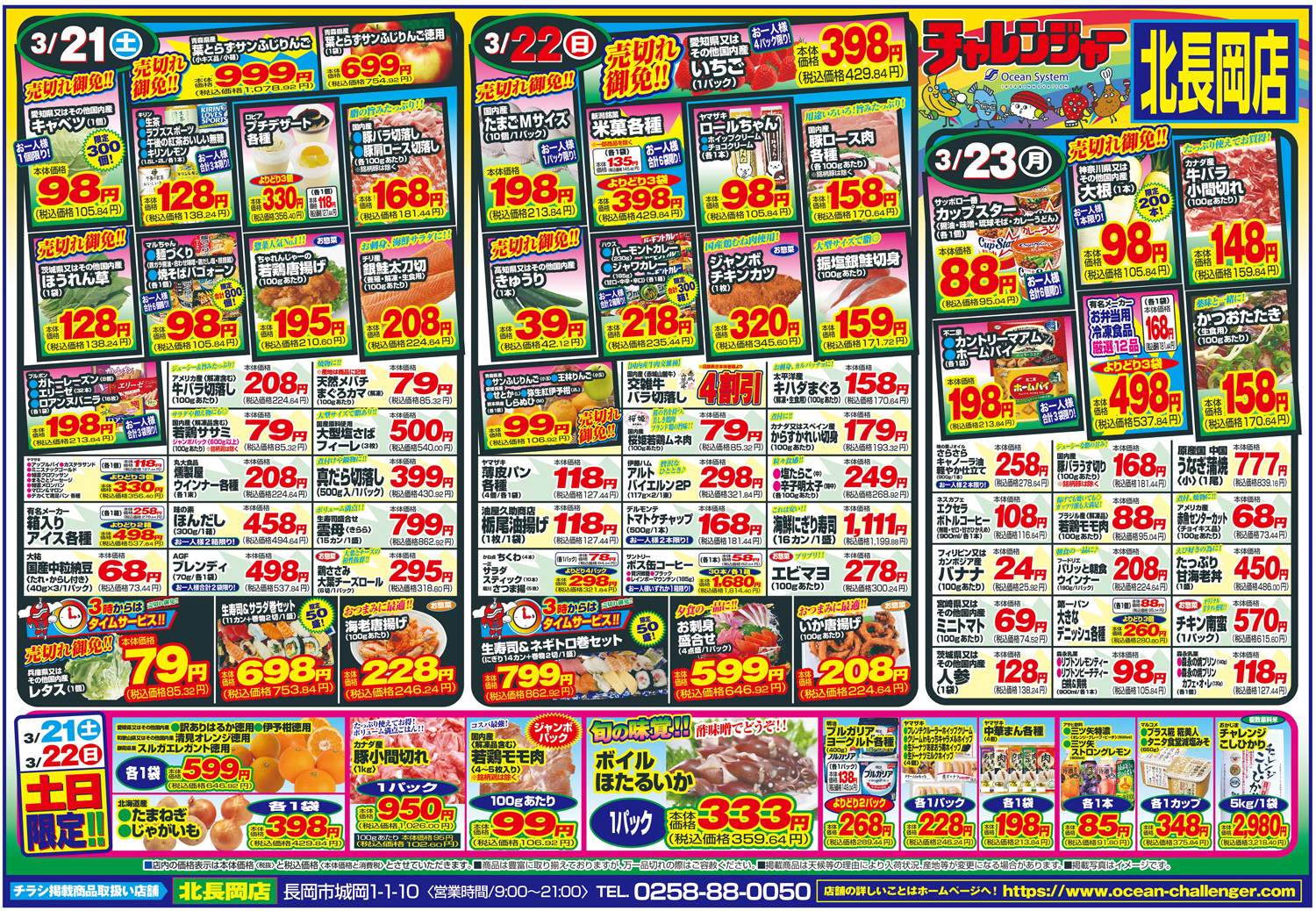セール期間:3/21(土)~23(月)対象店舗:北長岡店除く