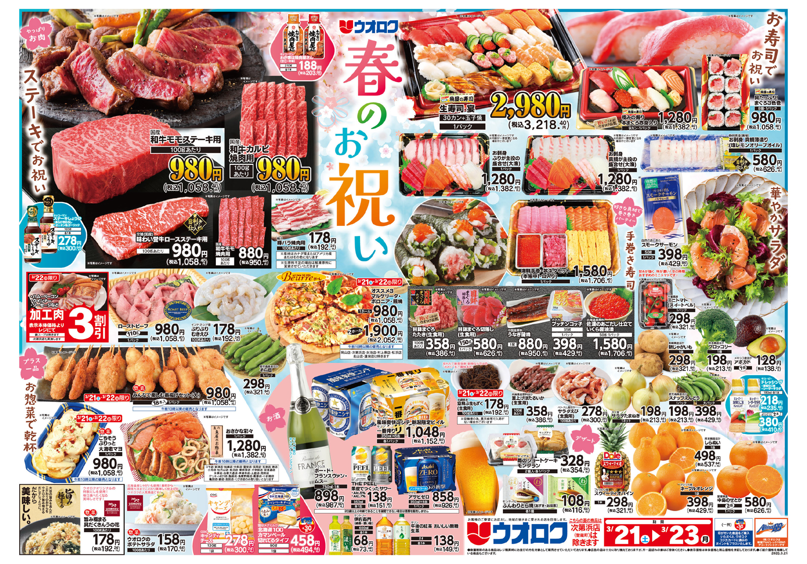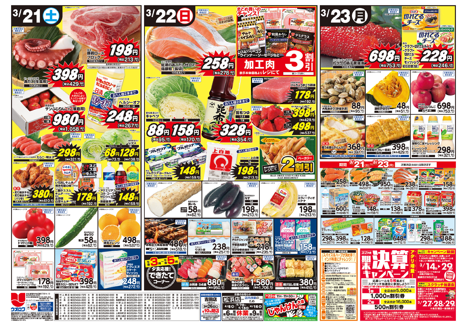 セール期間:3/21(土)~23(月)対象店舗:女池店・寺尾台店・小針店